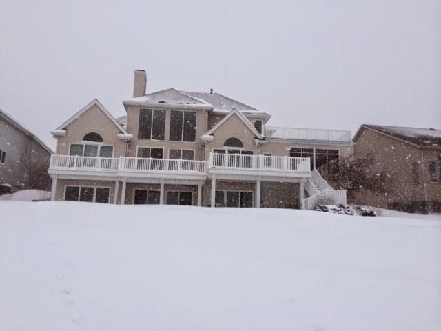 Snow drifts on the deck accumulating by 11am.